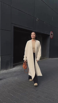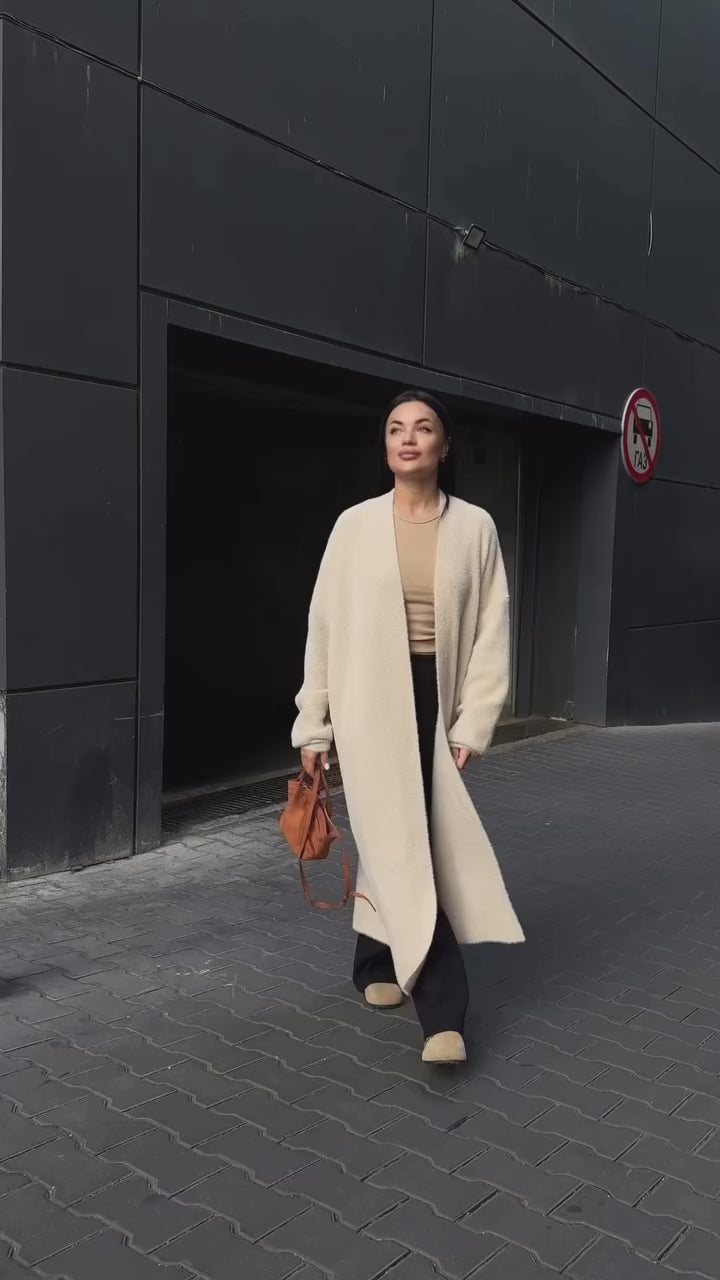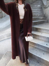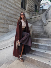 A luxurious oversized alpaca long coat in rich chocolate brown. Designed with a relaxed silhouette and soft texture, this timeless piece is perfect for layering over your favorite outfits. Ideal for fall and winter, it adds both warmth and elegance to your look.