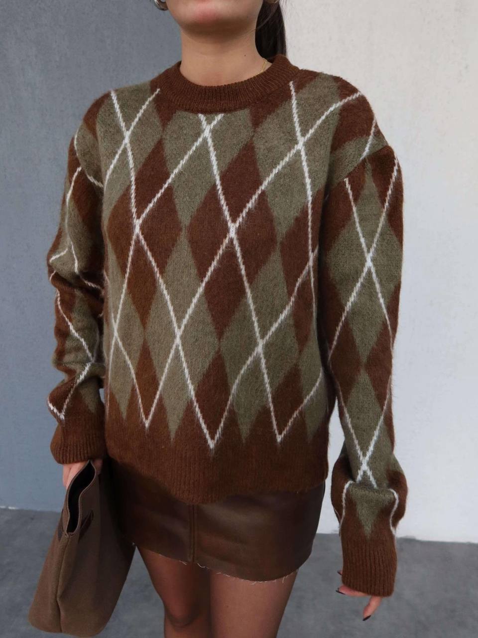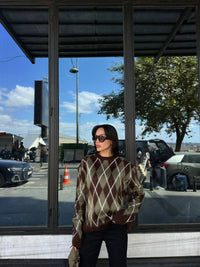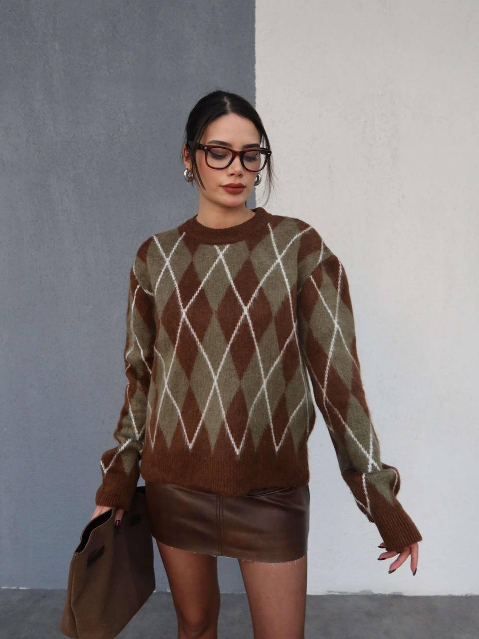 Featuring a classic diamond pattern in earthy brown and olive tones, it’s the perfect mix of timeless style and everyday comfort. The soft knit fabric makes it warm yet breathable, while the relaxed fit keeps it effortlessly stylish.