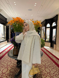 Crafted from a soft, textured fabric with a subtle faux-fur feel, it keeps you warm while adding a touch of sophistication to any outfit. The relaxed oversized fit ensures comfort, while front button closure makes it easy to wear.