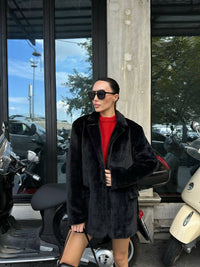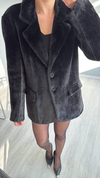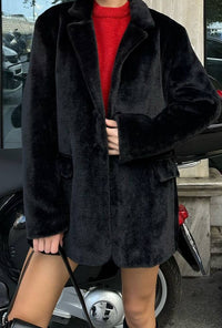 Soft to the touch with a rich, plush texture, it adds instant glamour and warmth to any look. Designed with a tailored fit and lapel collar, it brings a chic, sophisticated vibe whether you’re heading out for a night in the city or a casual day out.