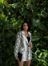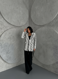 Turn heads with the Snakeskin Statement Blazer — a bold piece designed for the fearless. Featuring a sleek tailored cut and a luxe snakeskin print, this blazer adds instant edge to any outfit. Pair it with denim for a casual-chic vibe or leather pants for a night out.