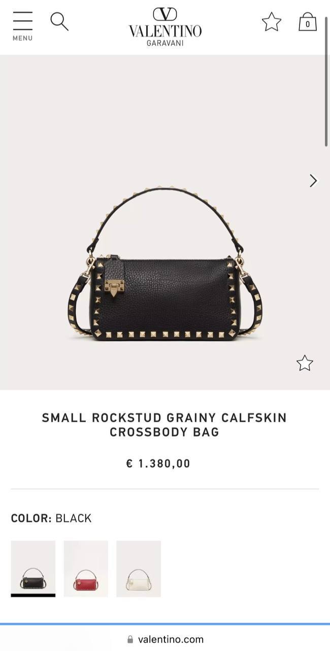 VALENTINO SMALL ROCKSTUD GRAINY CALFSKIN CROSSBODY BAG 19 x 13 x 7 cm